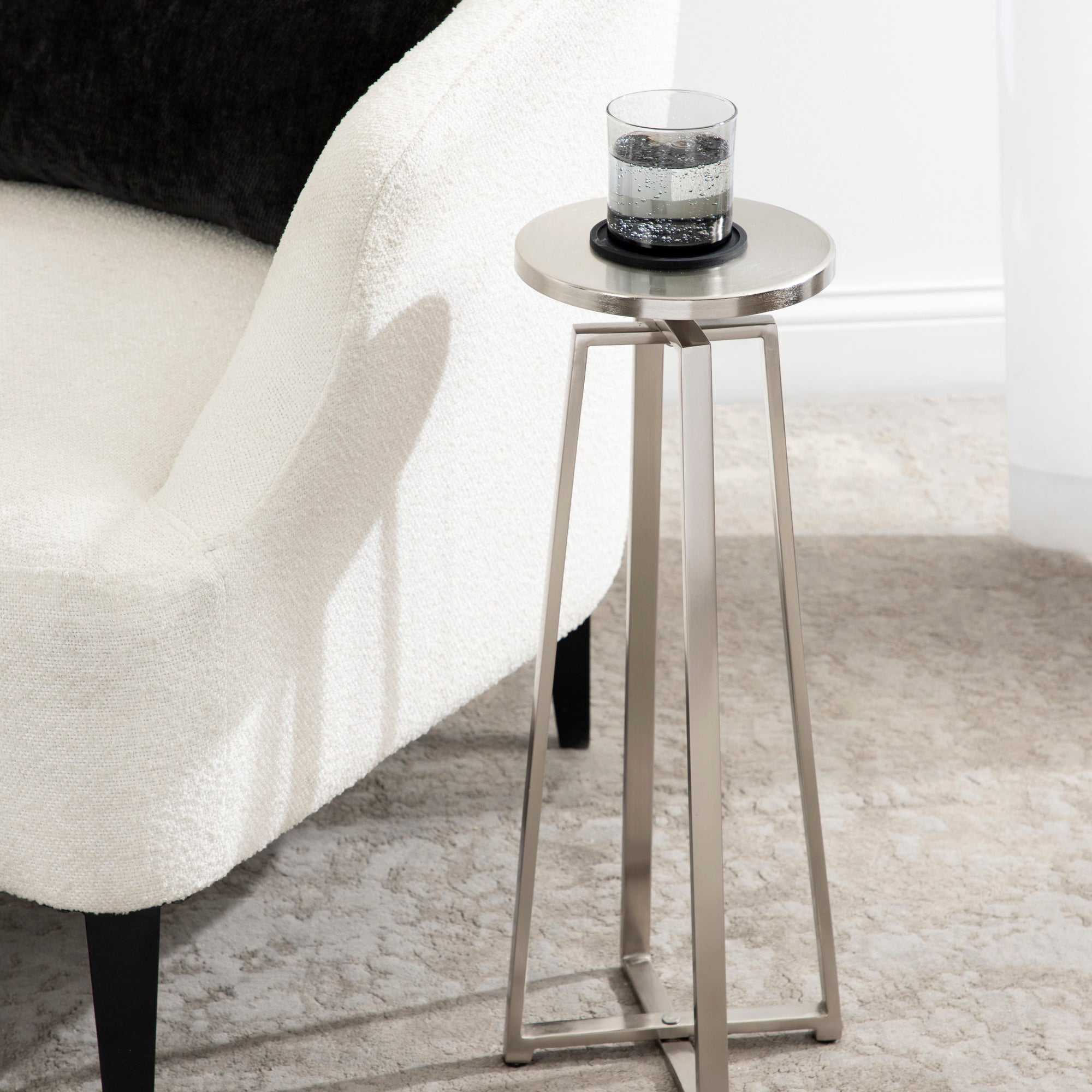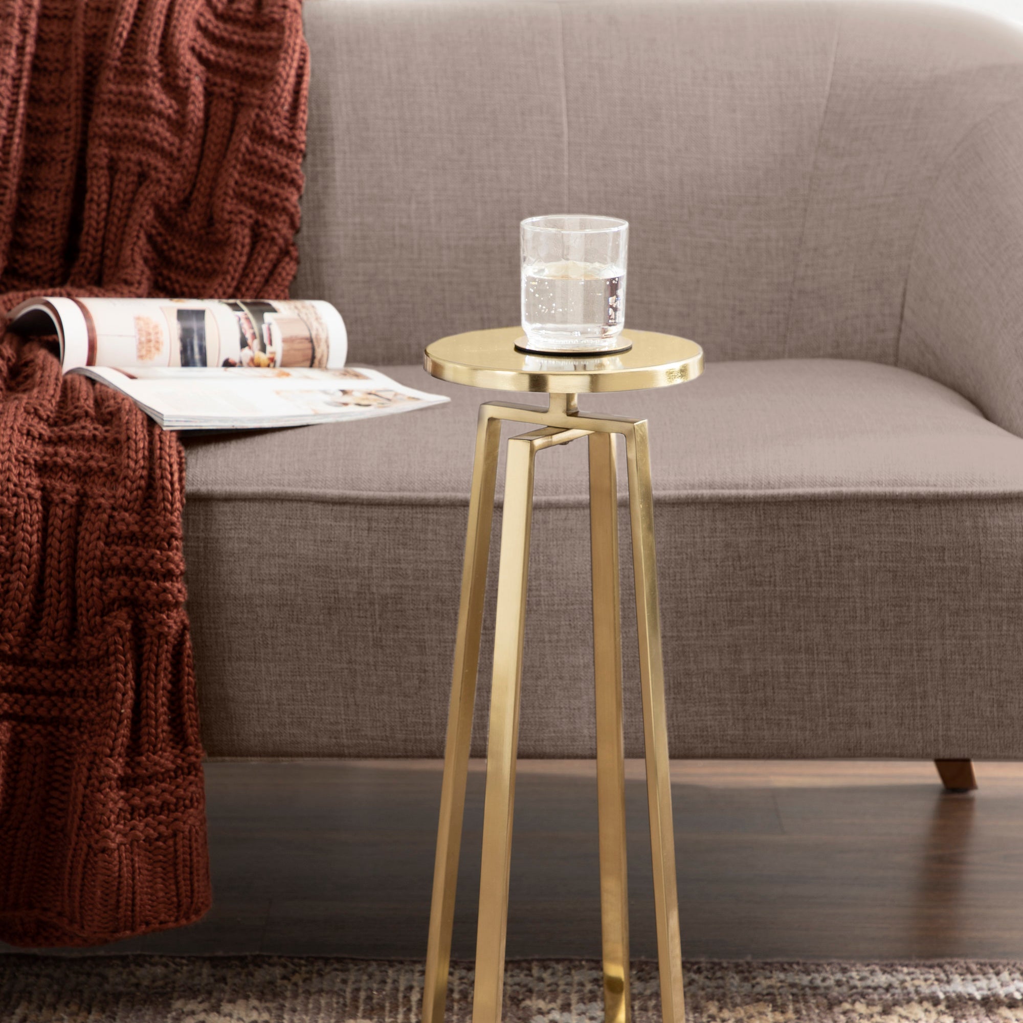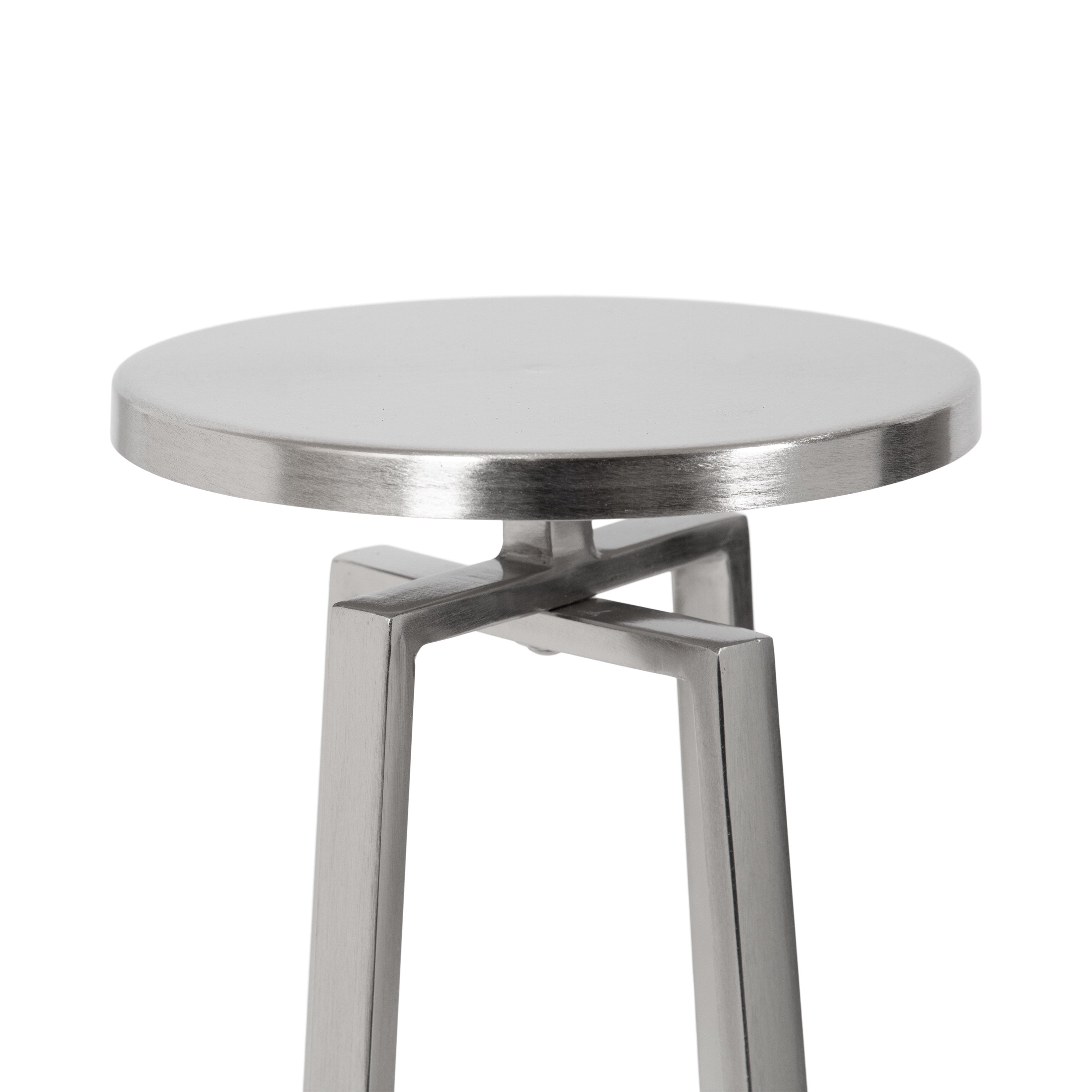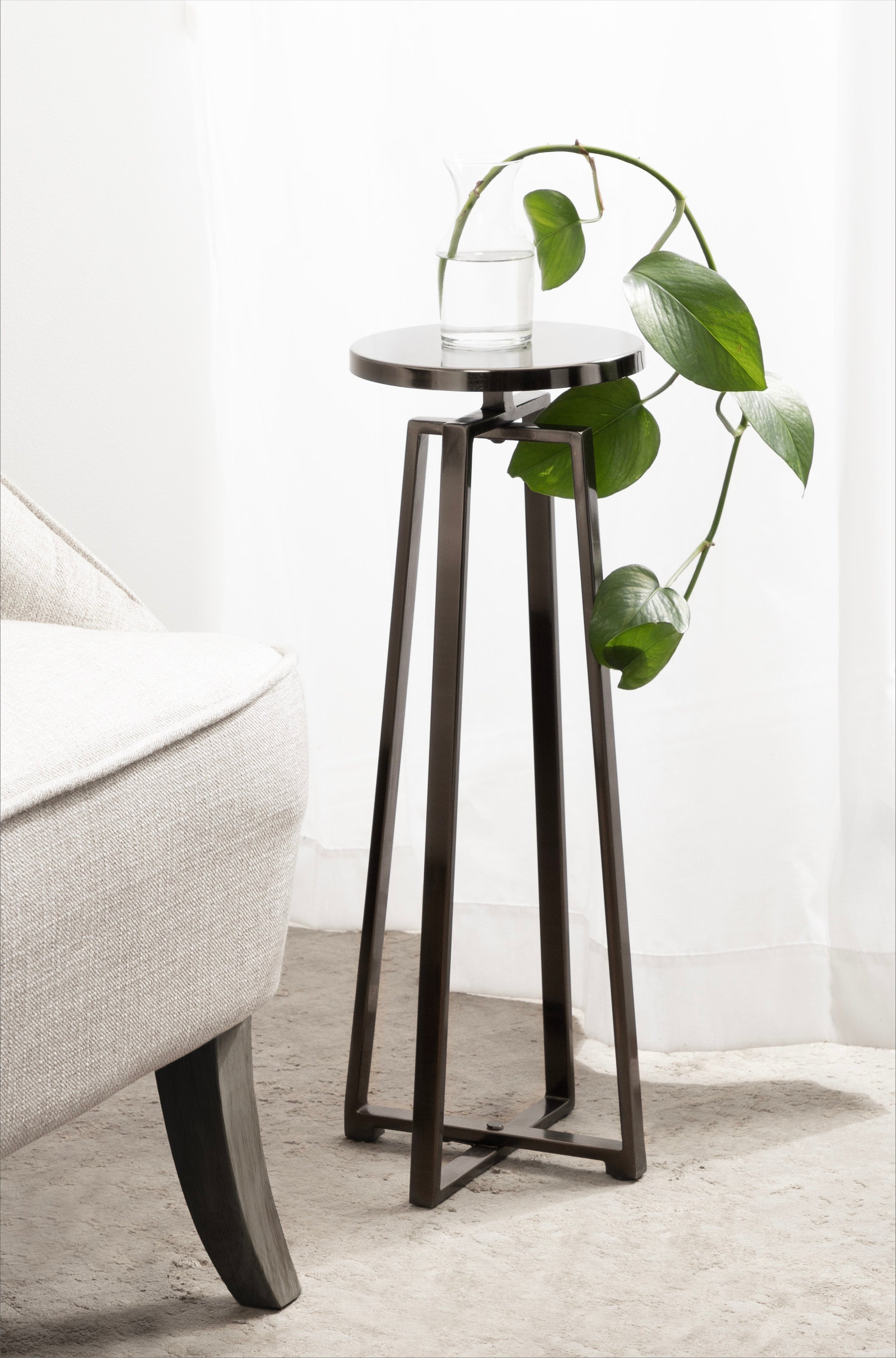 This elegant and refined table brings sophistication to any space in your home. Handcrafted in India and inspired by modern design, this cocktail table features an iron construction that provides a delicate reflective sheen. This elegant table is perfect for holding a cocktail, displaying a plant, or showcasing a photo.