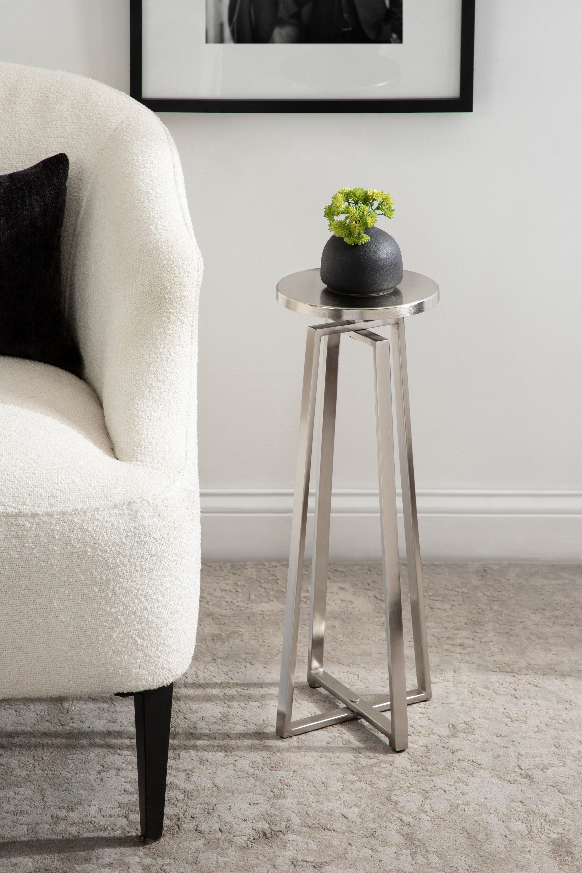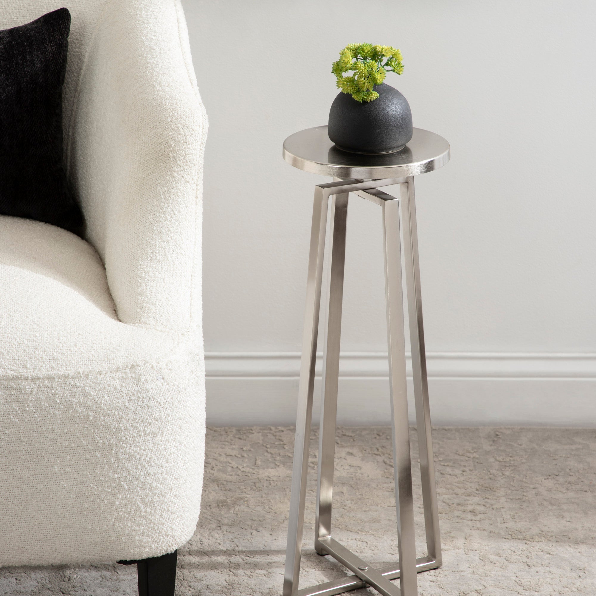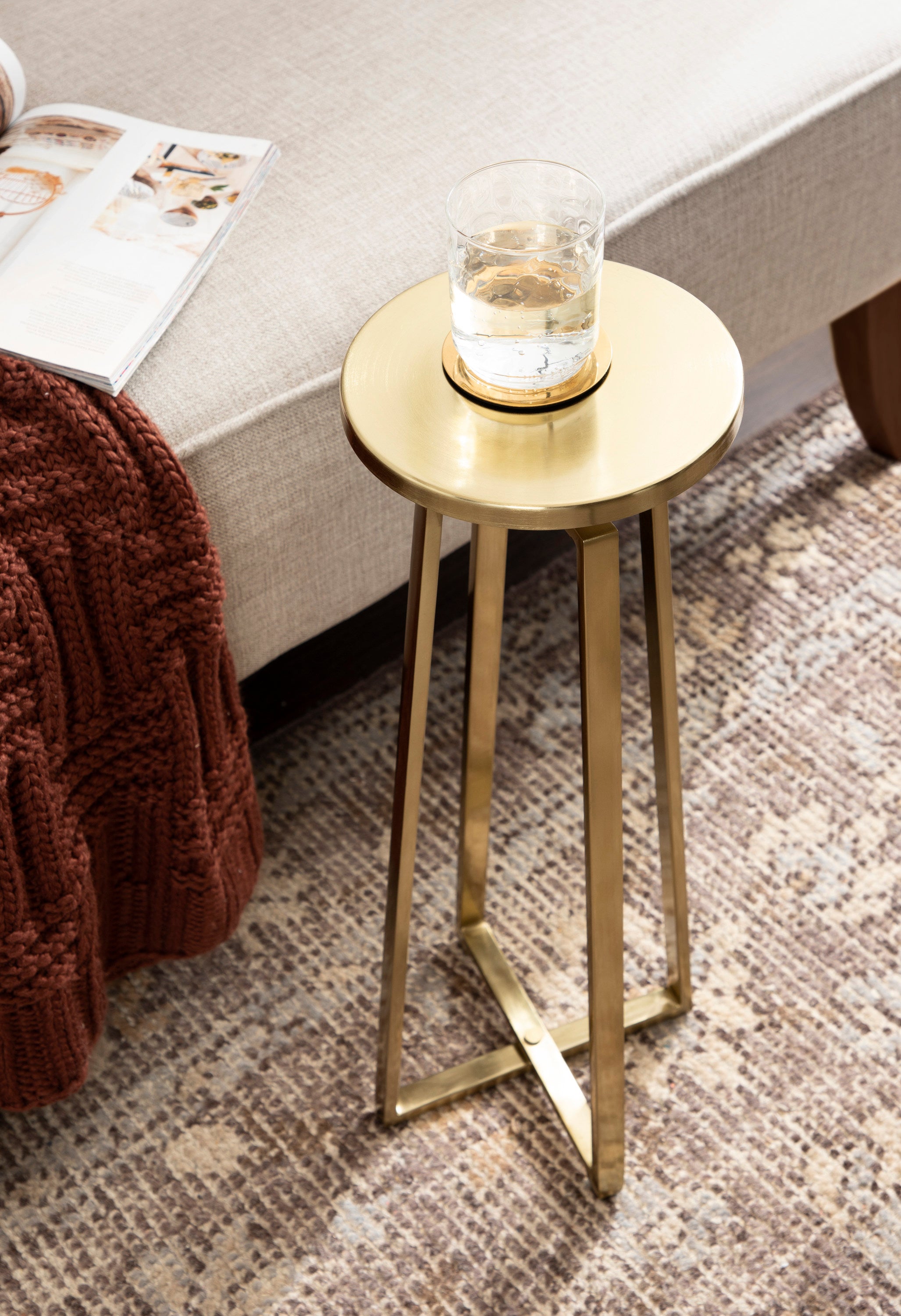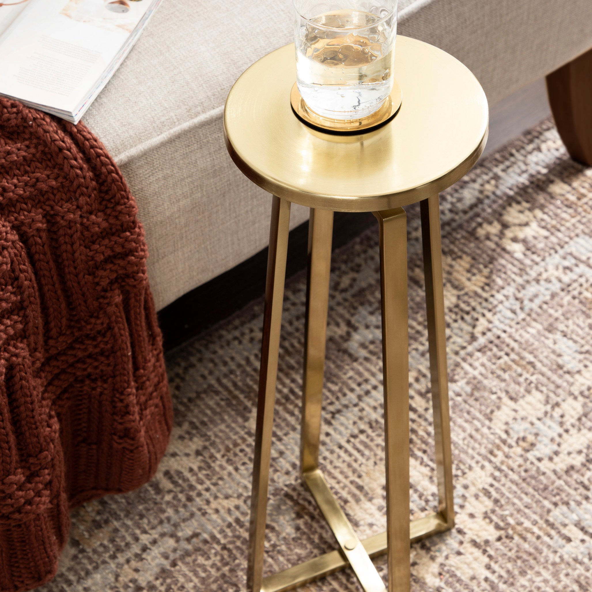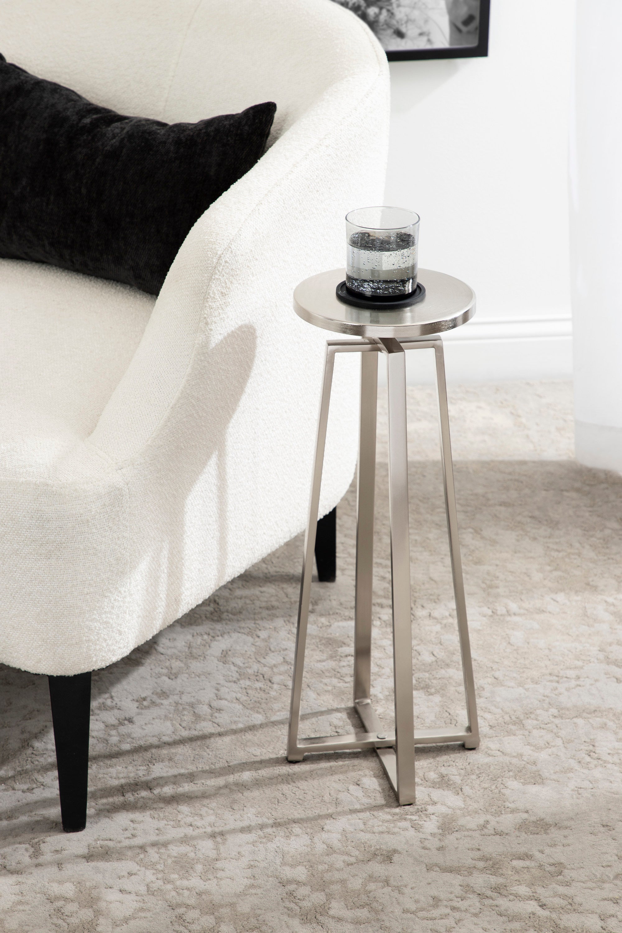 This elegant and refined table brings sophistication to any space in your home. Handcrafted in India and inspired by modern design, this cocktail table features an iron construction that provides a delicate reflective sheen. This elegant table is perfect for holding a cocktail, displaying a plant, or showcasing a photo.